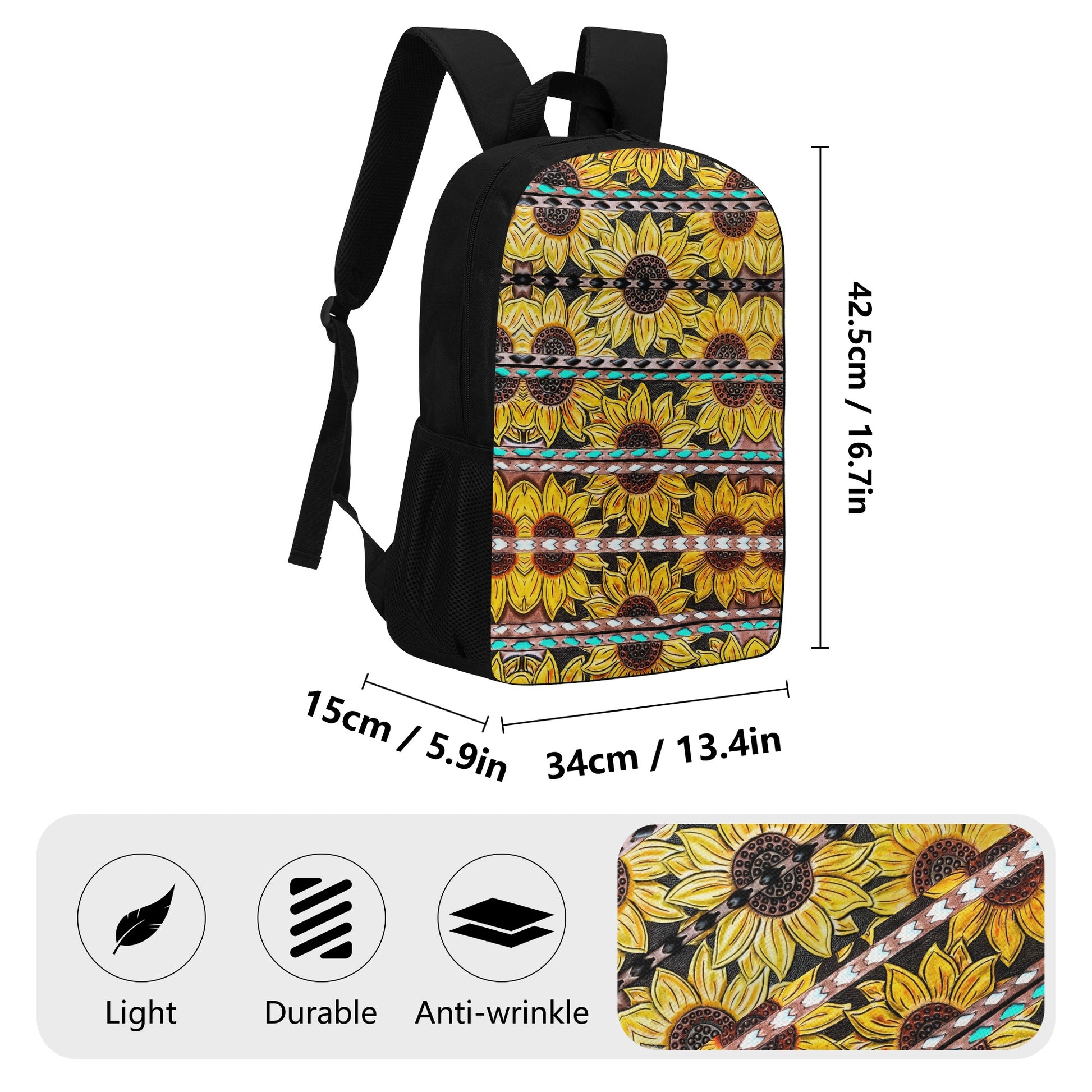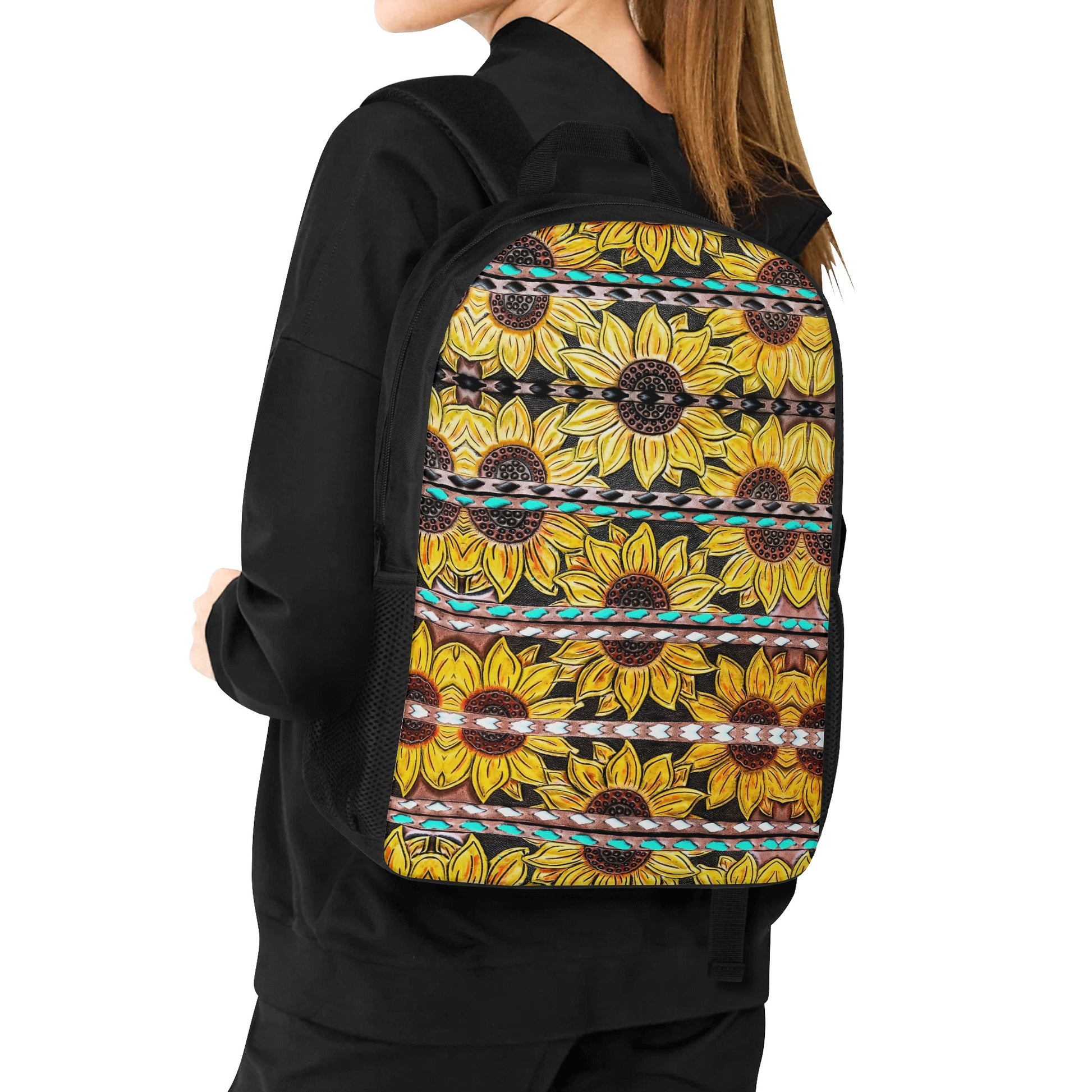 Tooled Sunflower Printed 17 Inch Laptop Backpack
