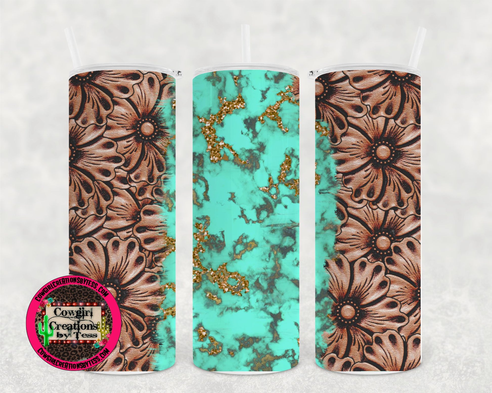 Turquoise and Tooled Leather Tumbler 2130